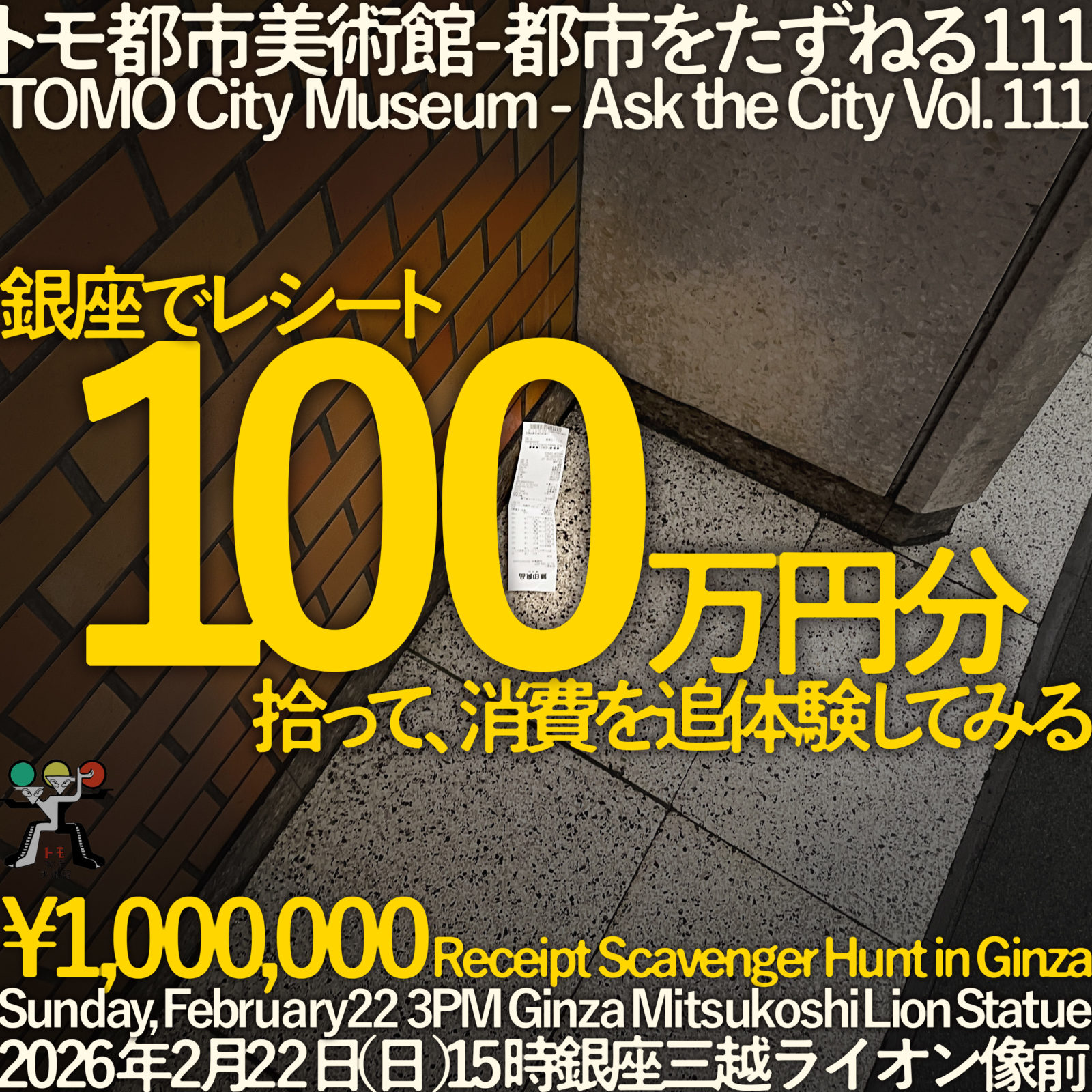 トモ都市美術館 – 都市をたずねる111「銀座でレシート100万円分拾って、消費を追体験してみる」- “¥1,000,000 Receipt Scavenger Hunt in Ginza”