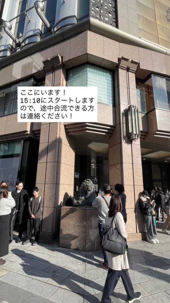 In Ginza, Tokyo’s iconic luxury shopping district, this might be a chance to think about money and consumption. And walking through the city while staring at the ground may reveal a different side of Ginza. Feel free to join or leave at any time. Let’s split up and aim for ¥1,000,000 together. If no one shows up, I’ll do it solo.